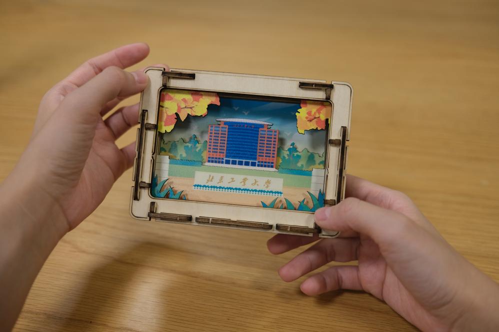 書(shū)立組裝完成后內(nèi)部呈現(xiàn)四幕立體畫(huà)卷